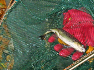 Am 31.10.2005 wurde die erste E - Befischung im Bereich der Sohlengleite durchgeführt und die Funktion überprüft.